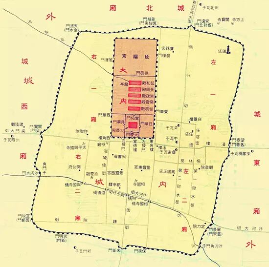 这样,大城墙里面套着若干座坊墙,整个城市格局就如一个巨大的围棋盘,所以唐朝诗人这么形容长安城:“百千家似围棋局,十二街如种菜畦。”非常传神。显然,只有完全靠人为规划并以强力维持,才能保持这样的城市形态。任何自发“生长”的城市建筑群,都不可能是这个样子。