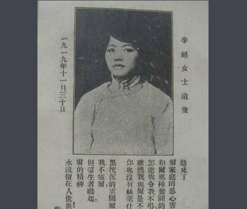 1919年11月30日,上千人参加了在石验马大街女高师学校召开的李超追悼会。在此之前,《晨报》从19日至26日,连续刊发《李超女士追悼大会启示》为之造势,此后也连续报道追悼会现场及后续声音。