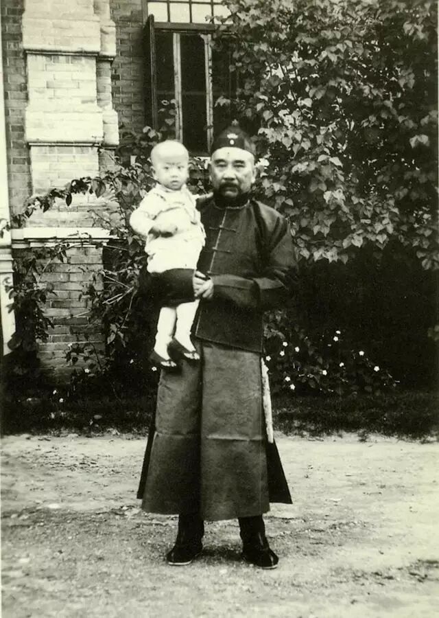 ▲ 张勋怀抱幼子在荷兰驻华公使馆,1917年
