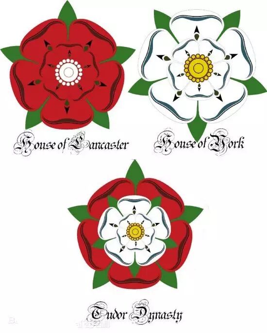 ▲ 兰开斯特家族的红玫瑰、约克家族的白玫瑰,以及都铎王朝的红白玫瑰