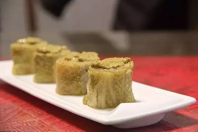 另一种“老北京”特色凉菜叫“豆儿酱”——一种由肉皮、豆腐干、黄豆、青豆、水芥粒,色如琥珀。此外还有“芥末墩儿”,用芥末粉白醋等腌渍白菜心,都是美味的佐酒凉菜小吃。这两种凉菜是年夜饭里必不可少的。