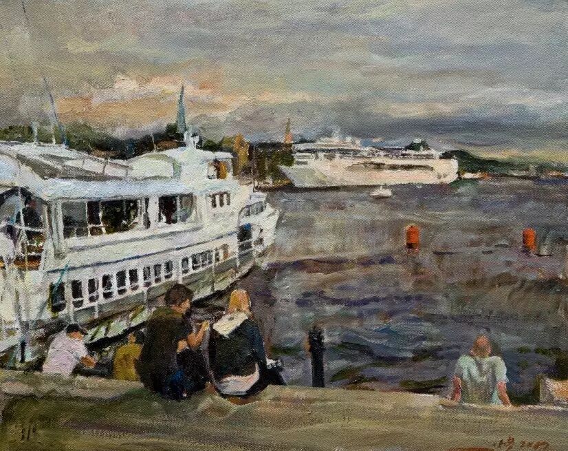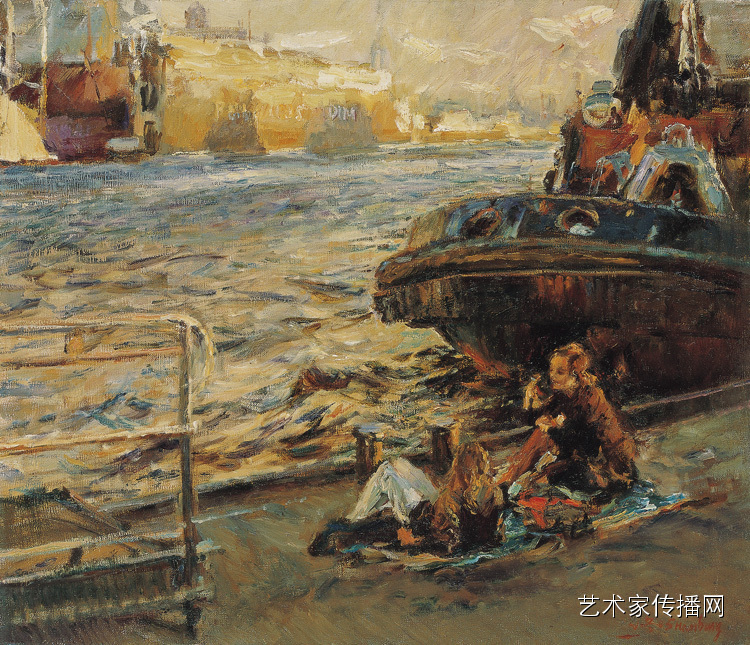 赫尔辛基的码头45×57cm