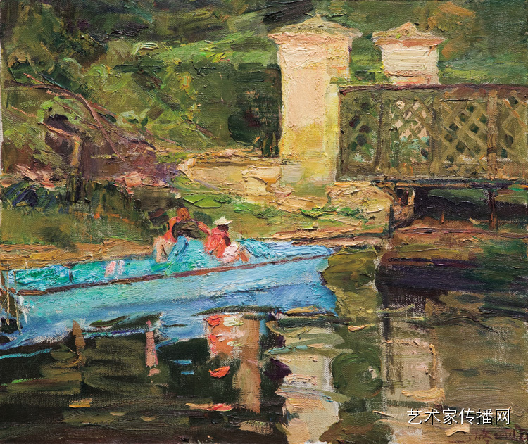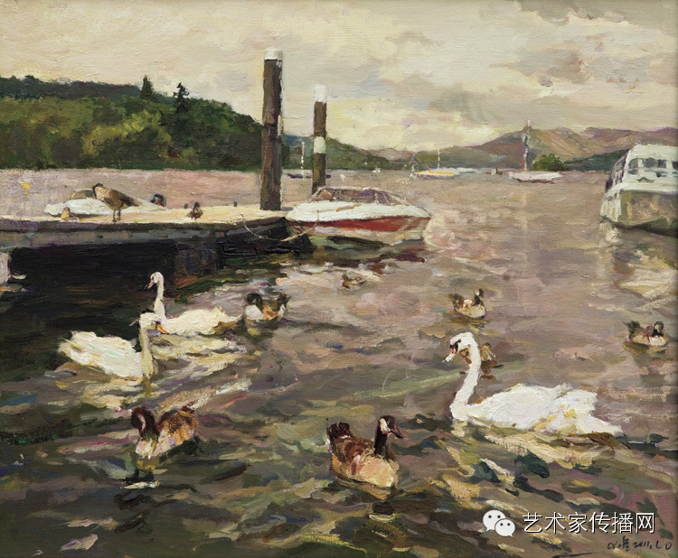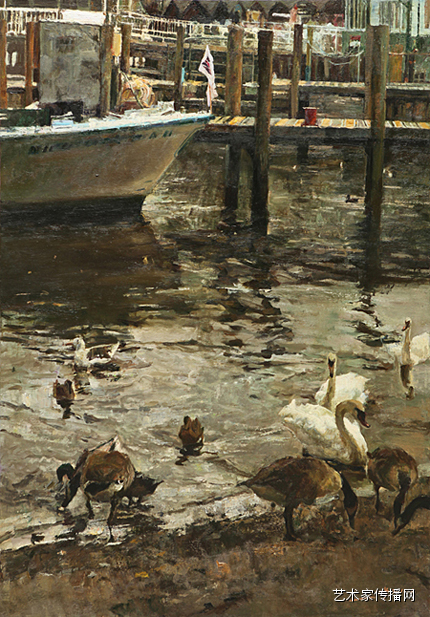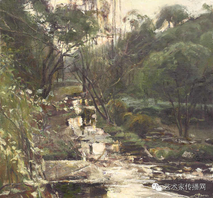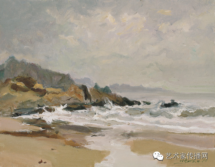第二是他的作品书写性比较强。他用笔、用油彩、用手、用作者的感觉、用心去画,这有一种绘画本身的力量,而且有一种不可重复性,这在油画中尤其珍贵。
