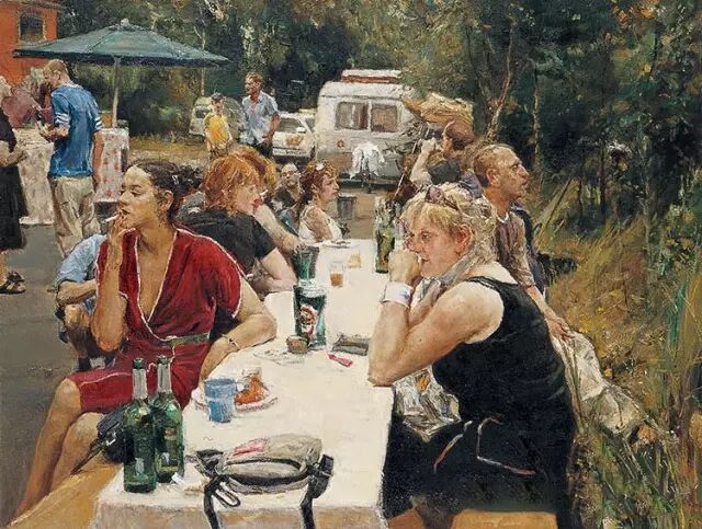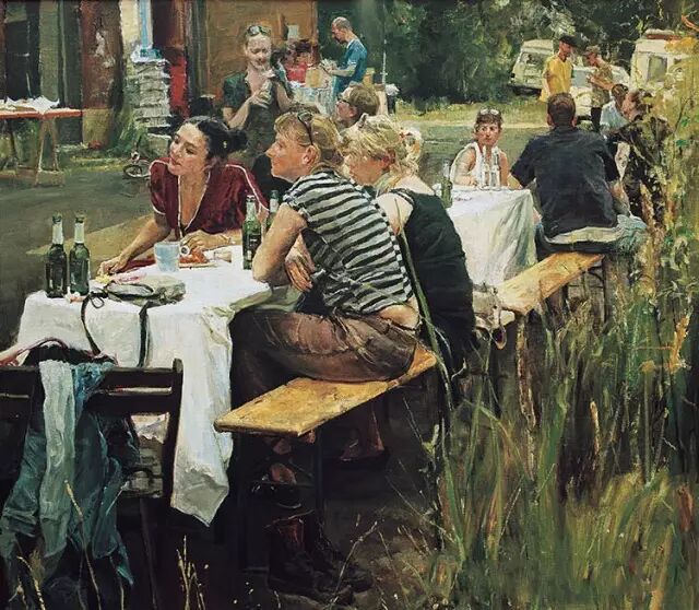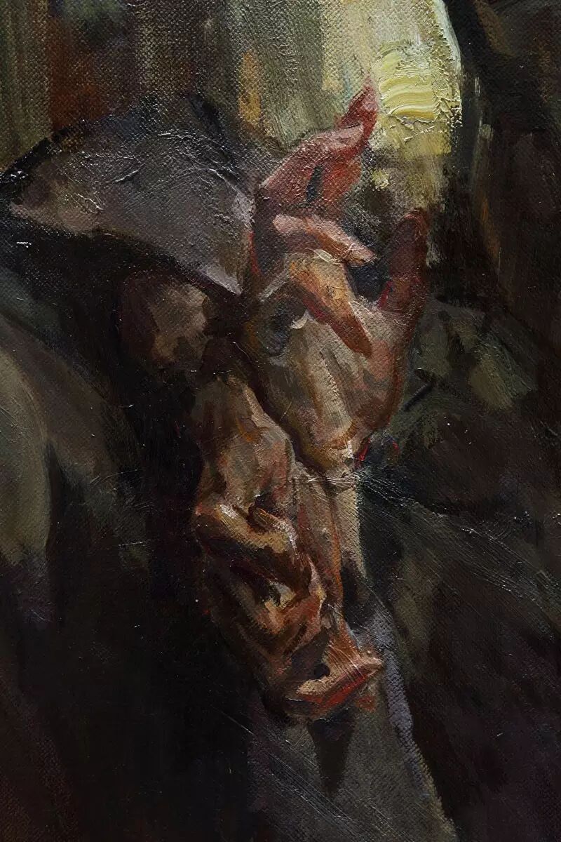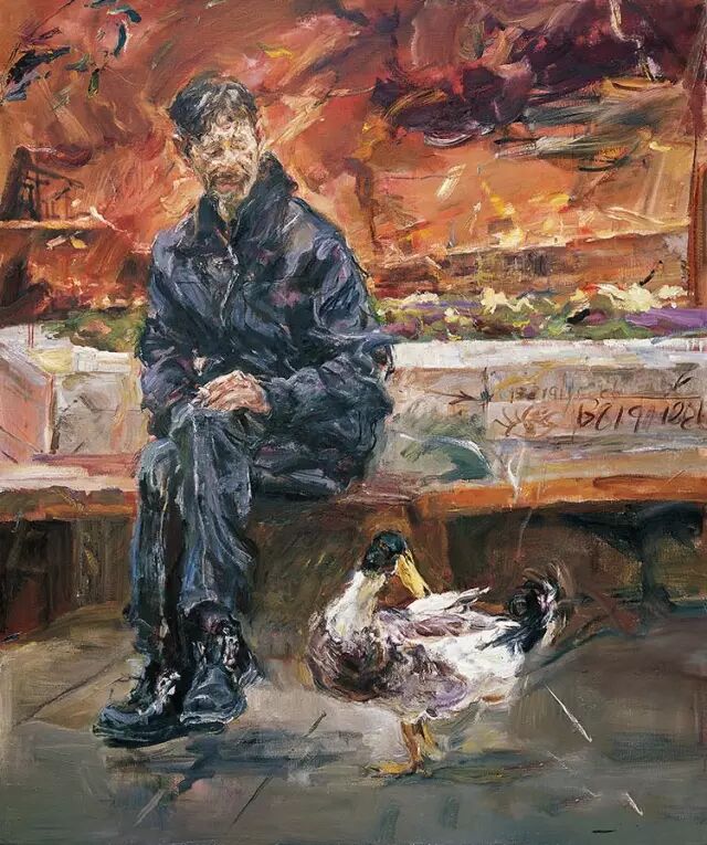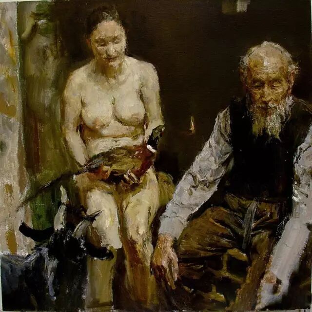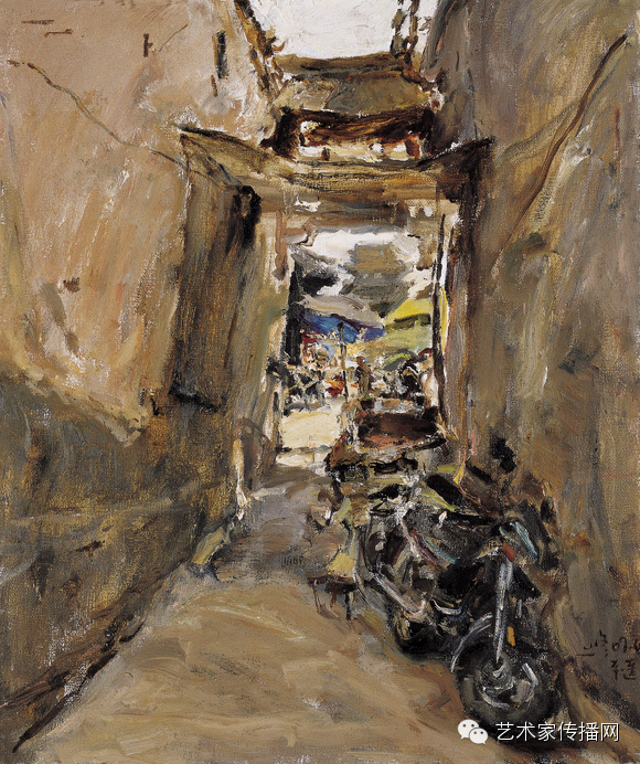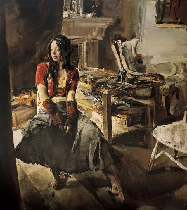 首先是他的作品油画感很强。他的画面给人的那种直觉性,把油画所特有的魅力用油彩、用画面展现给观众的是一种力量。他的画很注重造型的讲究,对形、对体积、对空间结构以及对特定对象那种特定型的寻求是很鲜明的。所以他的每一张画都很生动。