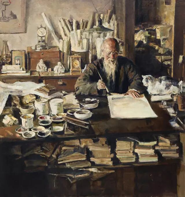 罗曼.罗兰笔下的人物也一直激励着他自己,他一遍遍临摹着印刷质量很差的画册上的大师作品,单一张《教皇英诺森十世》就临摹了数十遍,快能背画出来了,他坚持每天下课后去火车站画速写,那三年画的画后来称了一下有好几十斤。