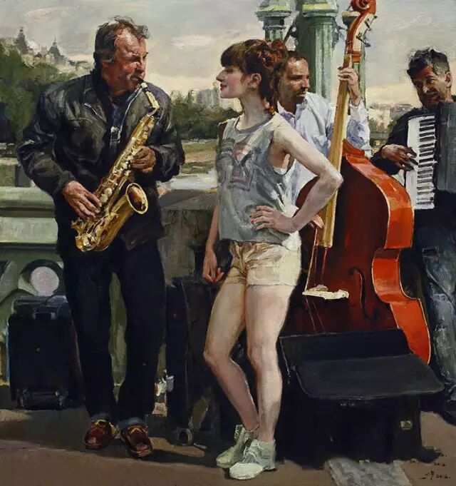 借取传统油画的塑造之功,用笔酣畅。