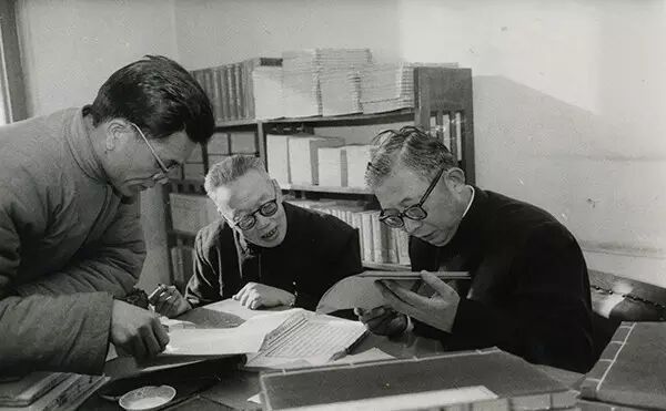 ▲ 1971年后的二十四史点校工作现场,右起:白寿彝、唐长孺、魏连科