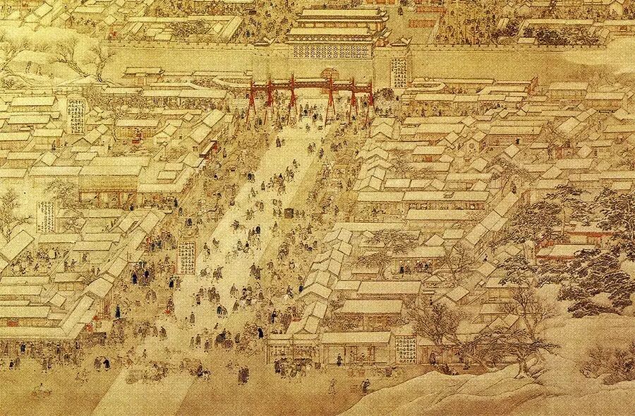 到了后来,朝廷觉得不胜其烦,管理日渐松懈。同时,一些高官权贵也纷纷沿街开设邸店,出租牟利,他们带头反对朝廷禁令,主张彻底放开。最终市场派大获全胜,里坊制被废止,往日的高墙纷纷消失,“市”在空间和时间上都得到极大的拓展,东京的大街小巷、桥头路口纷纷沿街开店,各种早市、夜市以及庙会集市和节日集市层出不穷,应有尽有,繁华程度不在今天的上海、深圳之下,其盛况可以通过张择端所绘《清明上河图》和孟元老所著《东京梦华录》得到佐证。