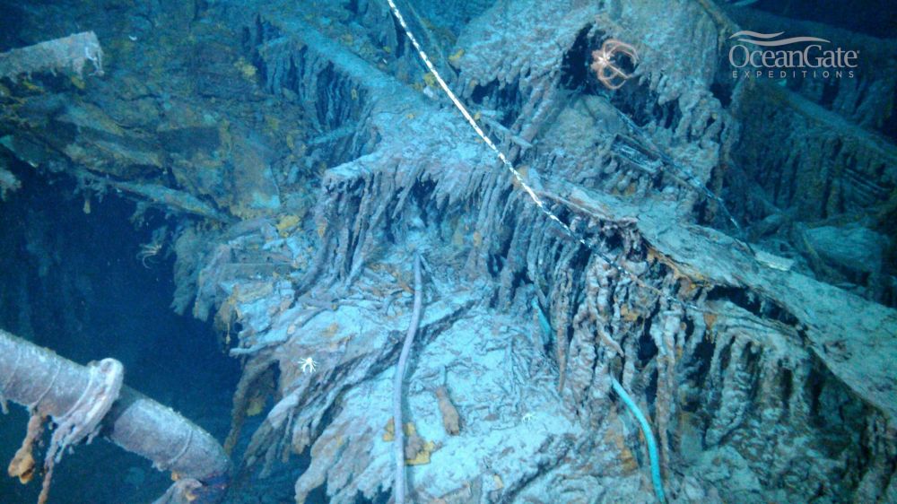 美国海岸警卫队于今天早上9点左右通过布设的遥控潜航器(ROV)在泰坦尼克号沉船残骸附近的水域发现了“碎片场”。